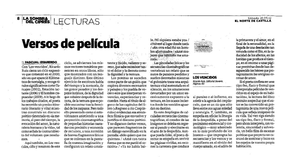 - El Norte de Castilla, suplemento cultural La sombra del ciprés, mayo 2012