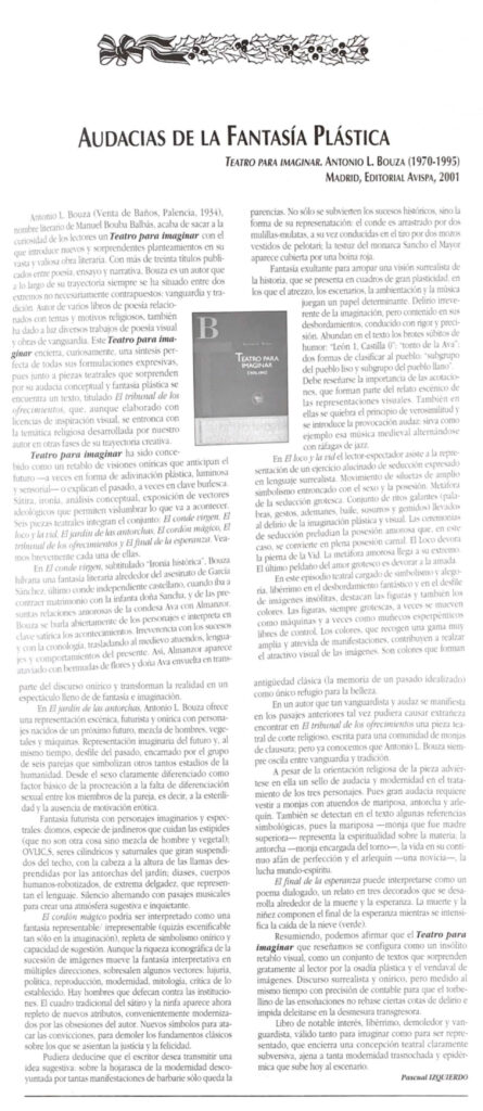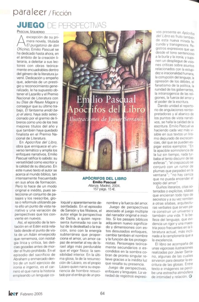 - Revista Leer (2005). Reseña sobre la obra de Emilio Pascual Apócrifos del Libro, Alianza Editorial, 2004.