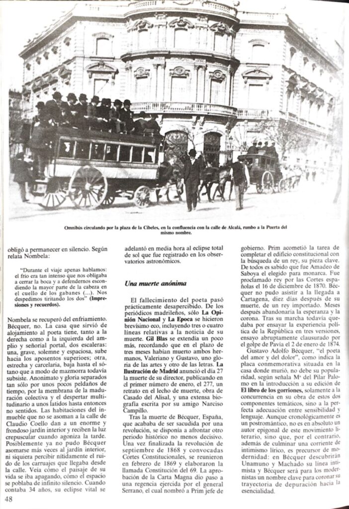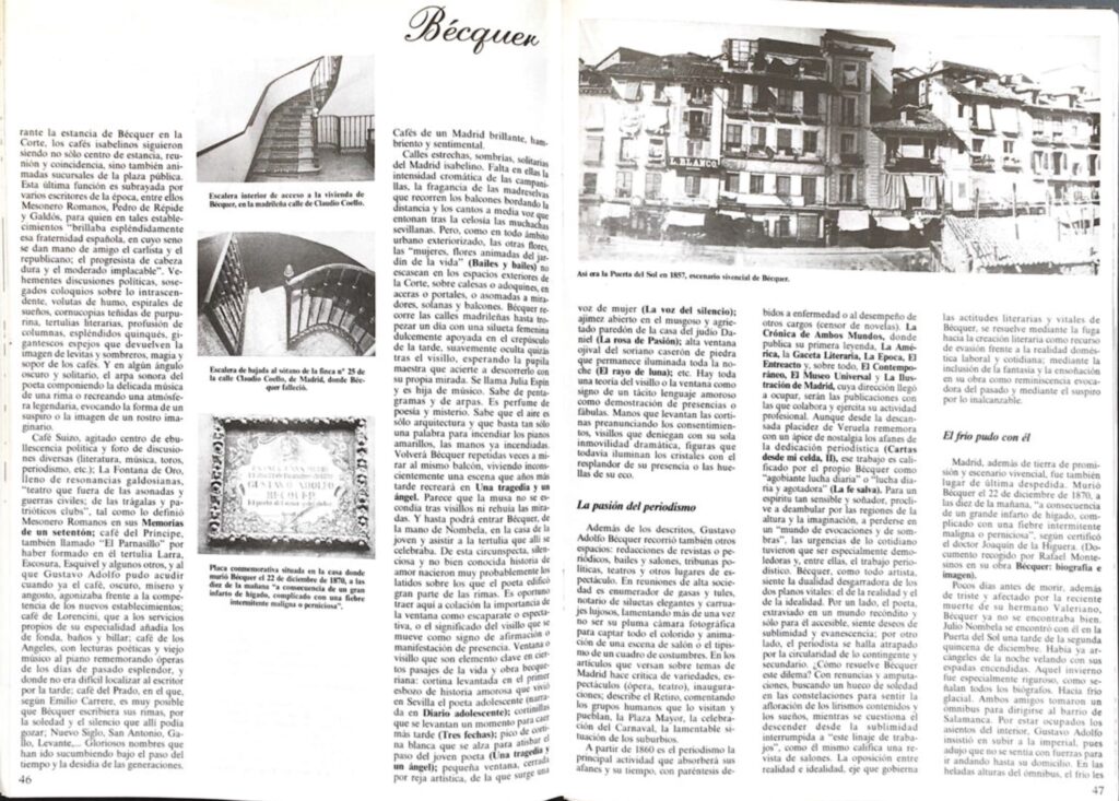 - Revista Leer (Octubre 1985). Artículo Bécquer y el Madrid isabelino.